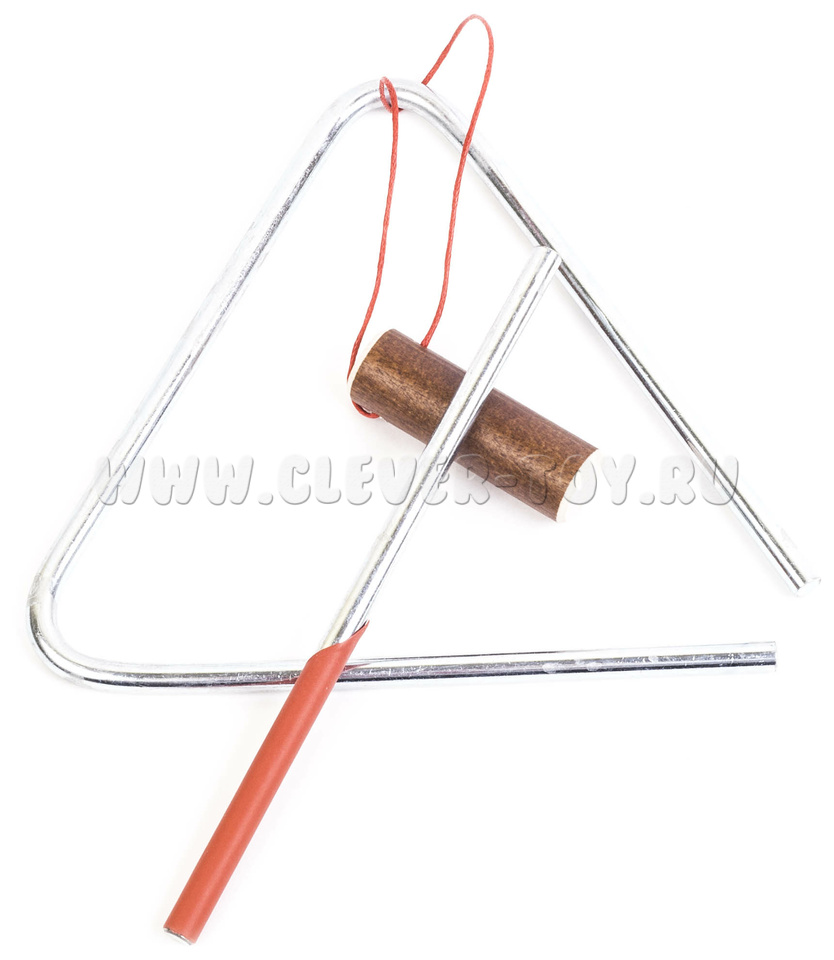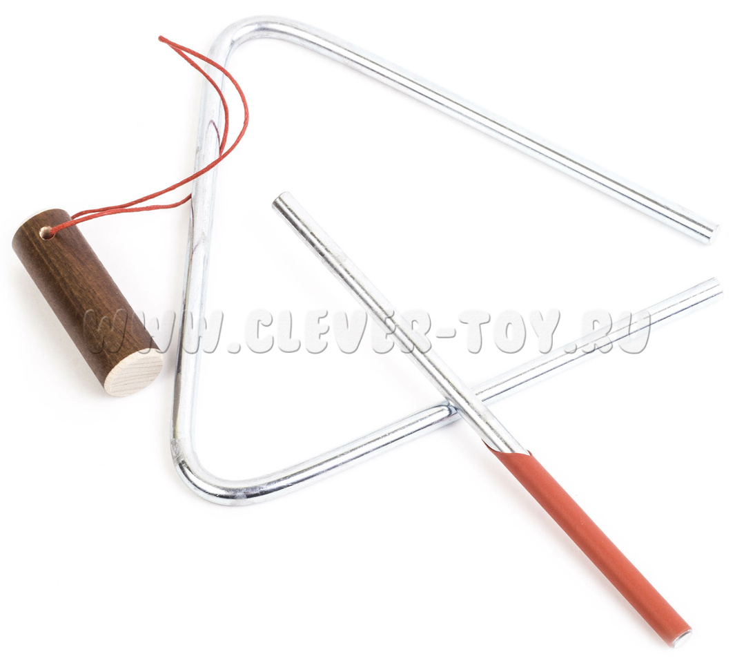 Треугольник выполнен из стали диаметром 6мм, длина стороны - 14см. Гальваническое покрытие не ухудшает качество звука и не разрушается при механическом воздействии. Ударная палочка из нержавеющей стали.