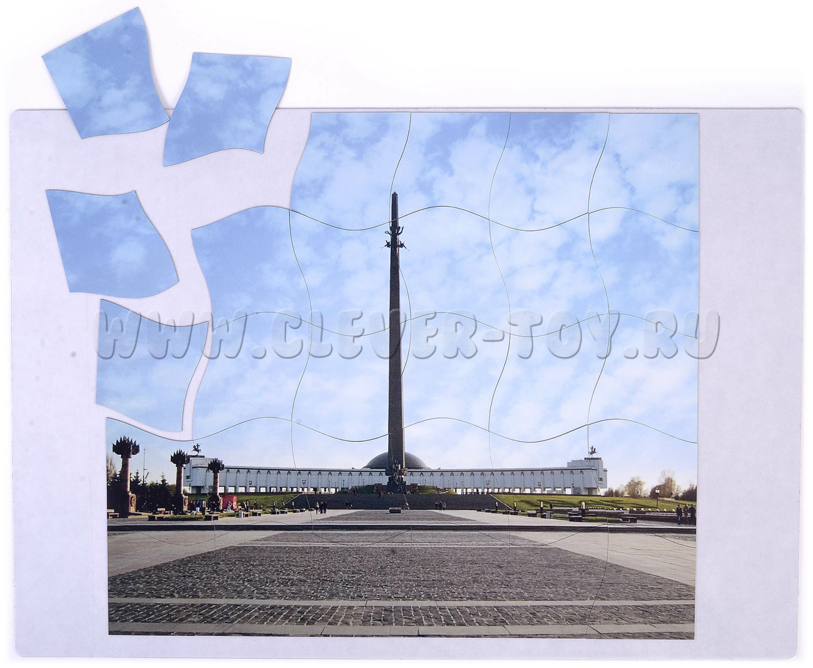 С помощью пазлов можно украсить школьную доску ко Дню Победы 9 мая. Пособие подходит для старшей группы детского сада и знакомит детей с памятниками Великой Отечественной войны.
