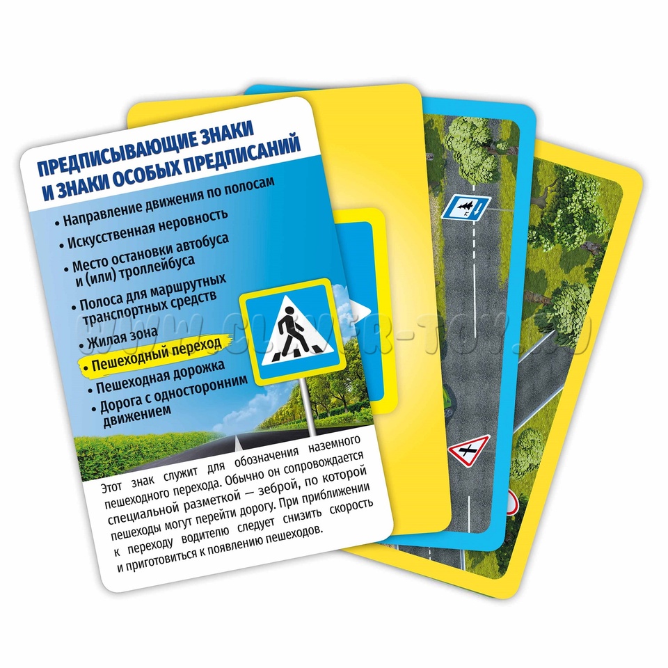 Четыре познавательных карточных игры о правилах дорожного движения и дорожных знаках, красочные иллюстрации.