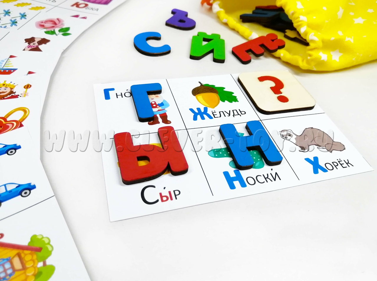 Развивающий и обучающий набор фишек и карточек предлагает множество вариантов игры. Яркие и красочные иллюстрации привлекут внимание ребёнка и помогут познакомиться с буквами и цифрами в игровой форме. Игра способствует развитию внимания, мышления, скорости реакции, памяти, речи и кругозора.