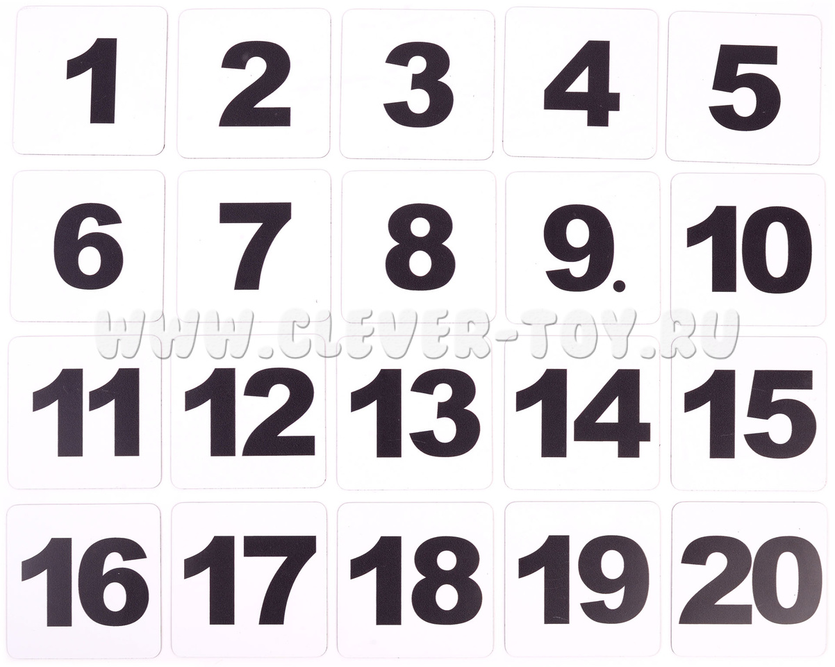 Набор магнитных карточек "Числа от 1 до 20" (фон белый)