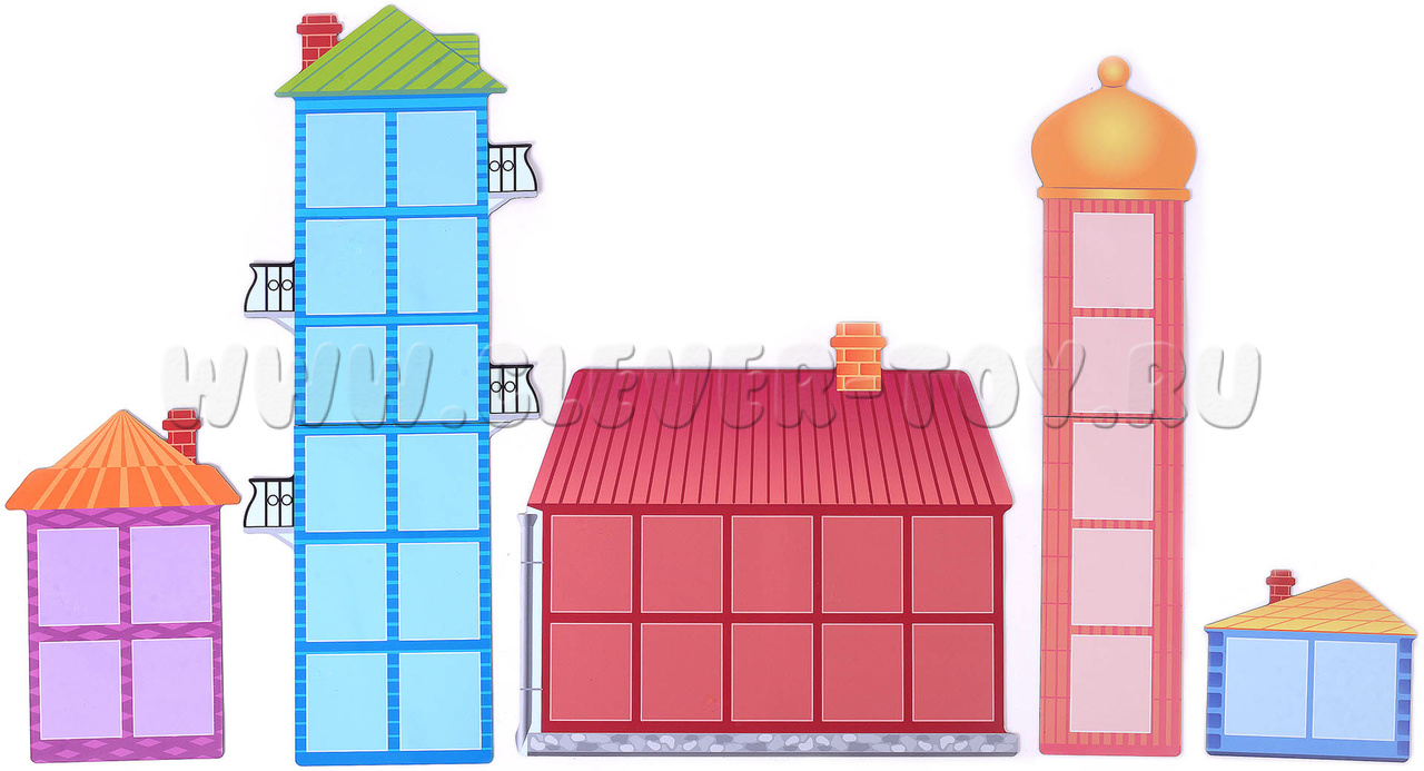 Высота домиков от 12 до 48 см, размер карточек: 5 см х 6 см.