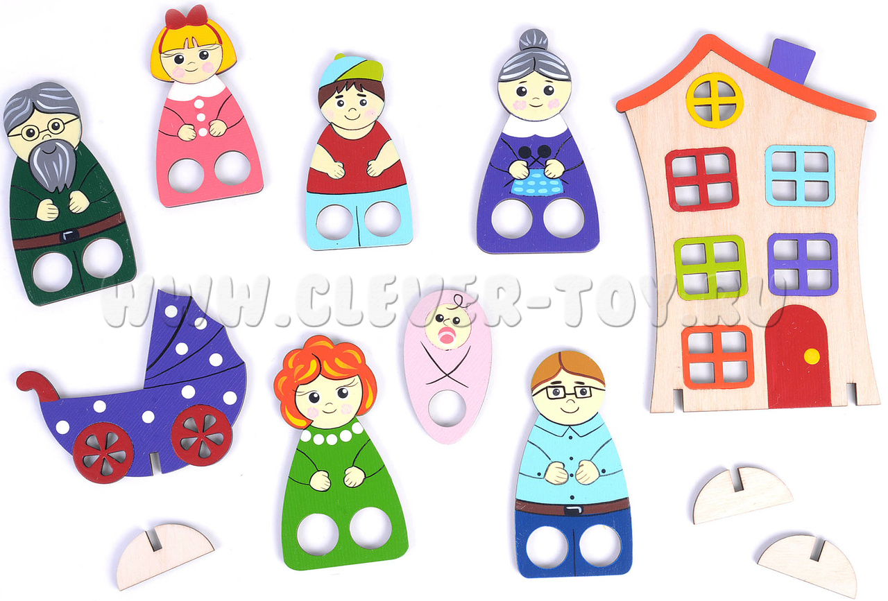 С помощью набора «Семейка» взрослые и дети смогут создавать свои домашние пальчиковые спектакли, придумывать интересные истории про свою семью, разыгрывать сказочные сюжеты, малыш сможет побывать в роли актёра, присваивая разным персонажам голоса и характеры, сможет попробовать себя в роли режиссёра первых театральных представлений.