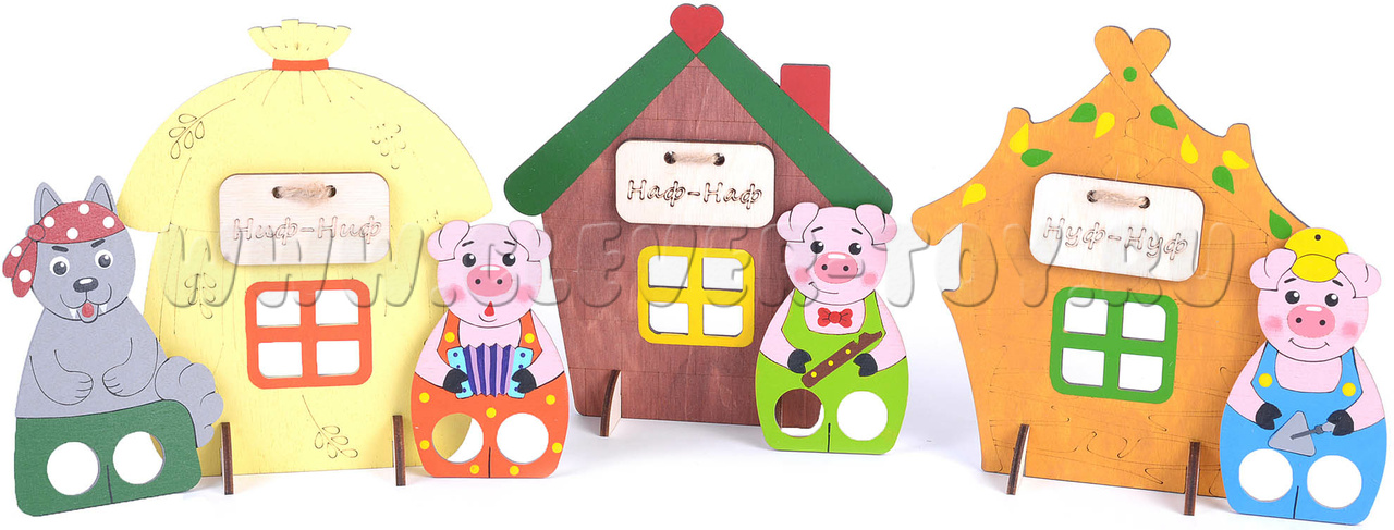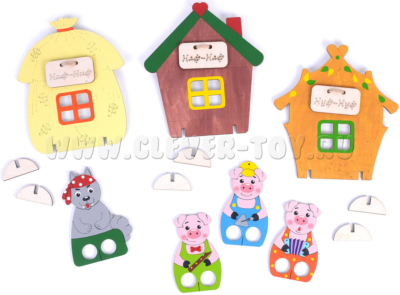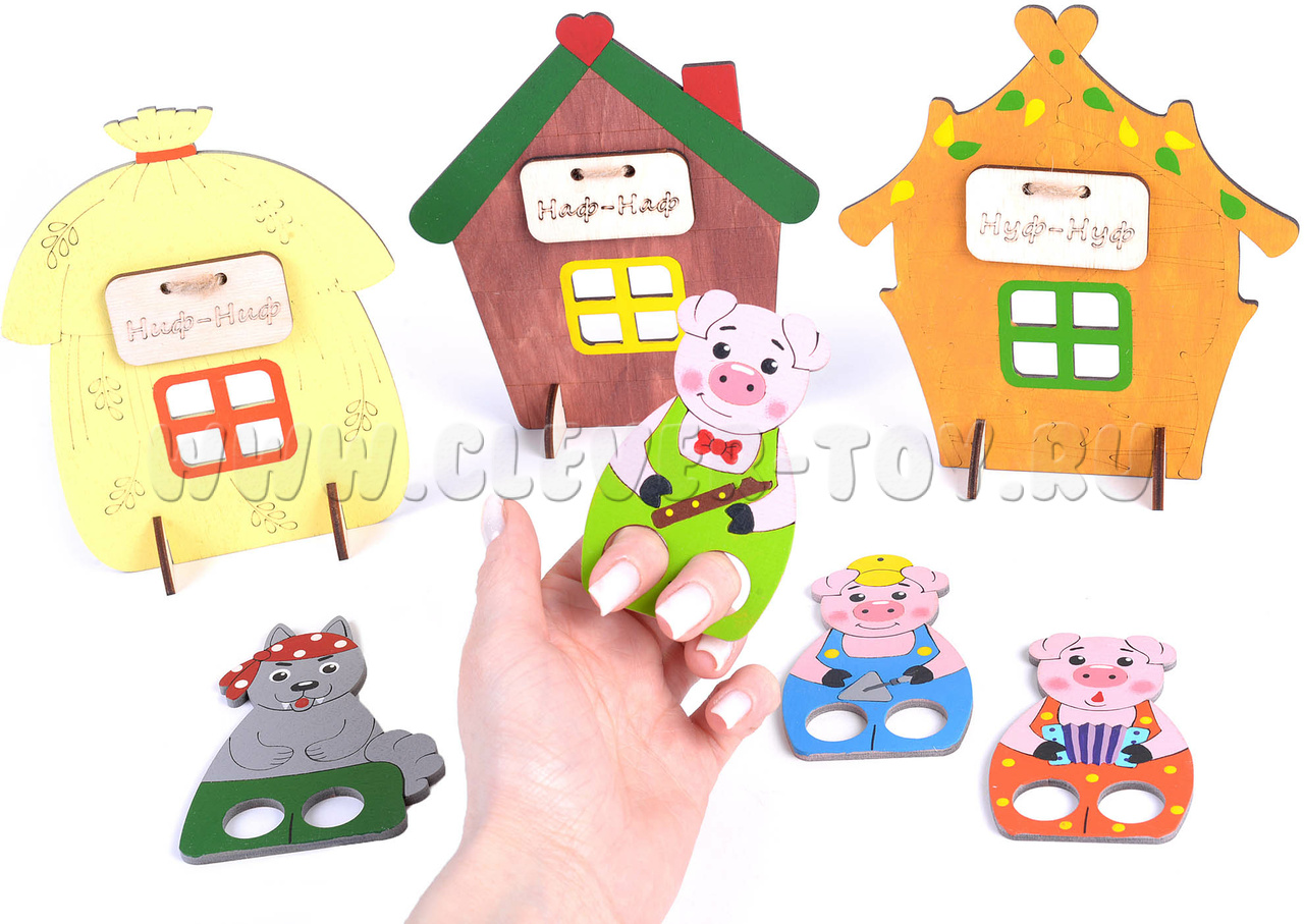 Пальчиковый набор "Три поросенка" (дерево)