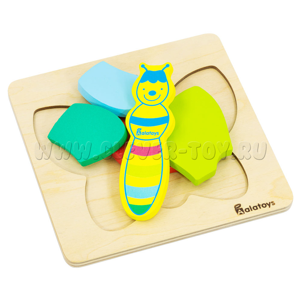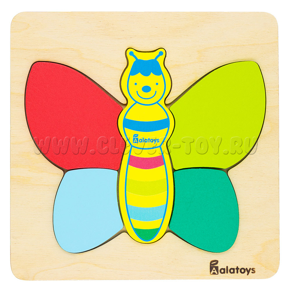 Пазл «Бабочка» представляет собой деревянную основу с углублениями для размещения деталей уточки. Только правильно подобрав детали по форме и размеру, у ребёнка получится сложить правильные пазлы. Не забывайте хвалить малыша при каждом верном действии.
