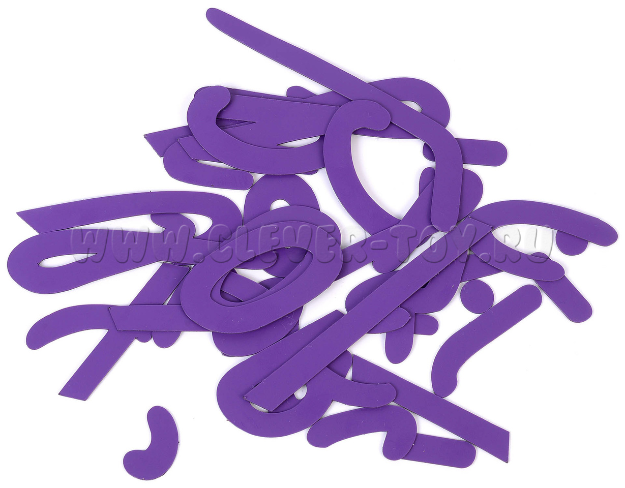 Элементы букв выполнены в 2-х цветах: Строчные выполнены в темно-фиолетовом цвете; Прописные в сиреневом.