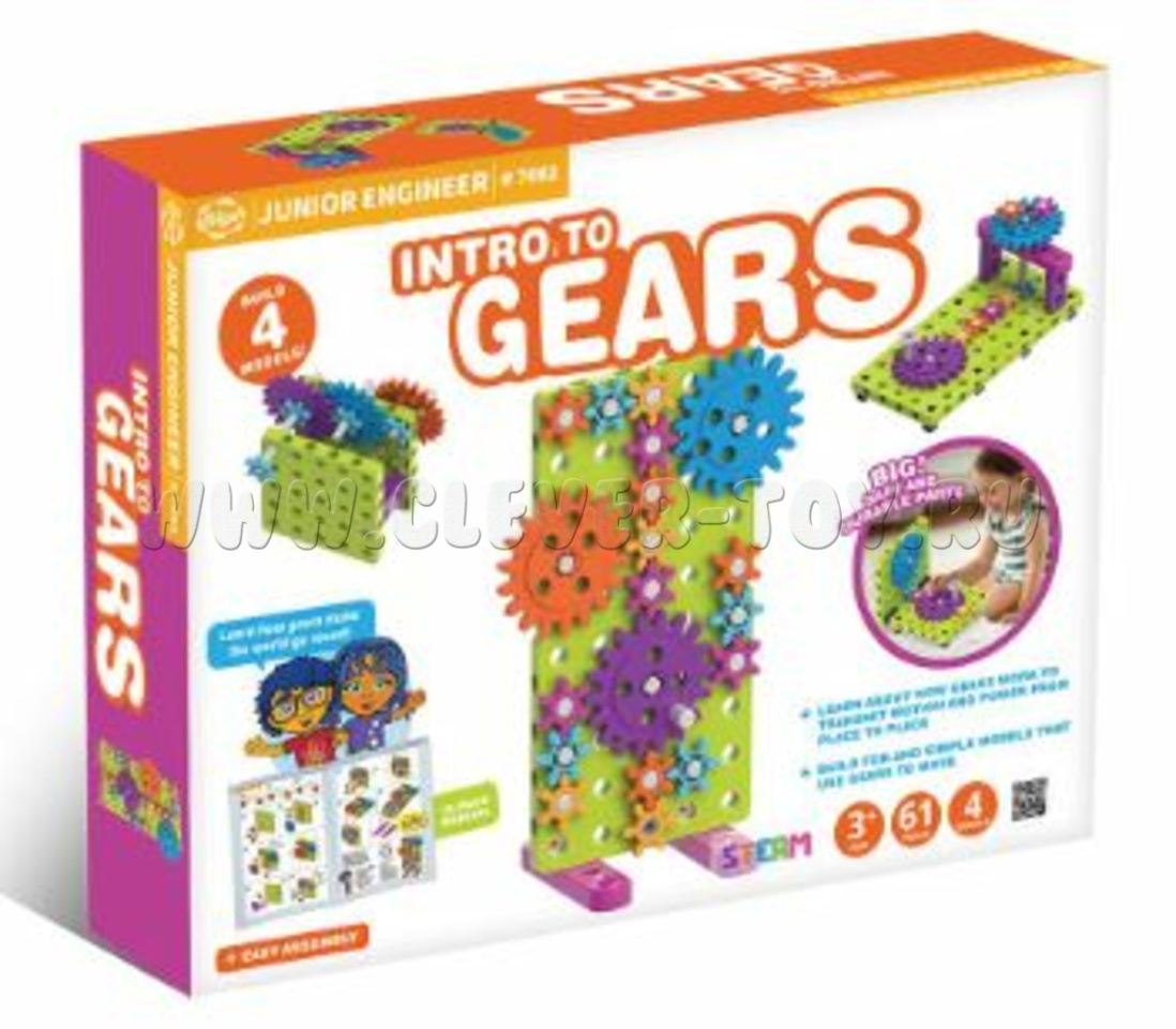 Этот конструктор предназначен для изучения основ зубчатой передачи и простых механизмов. Он состоит из 61 детали, из которых можно собрать 4 модели с зубчатой передачей. Набор подходит для детей, начиная с младшего школьного возраста, и помогает им понять, как работают механизмы, изменяющие скорость, мощность и направление движения.
