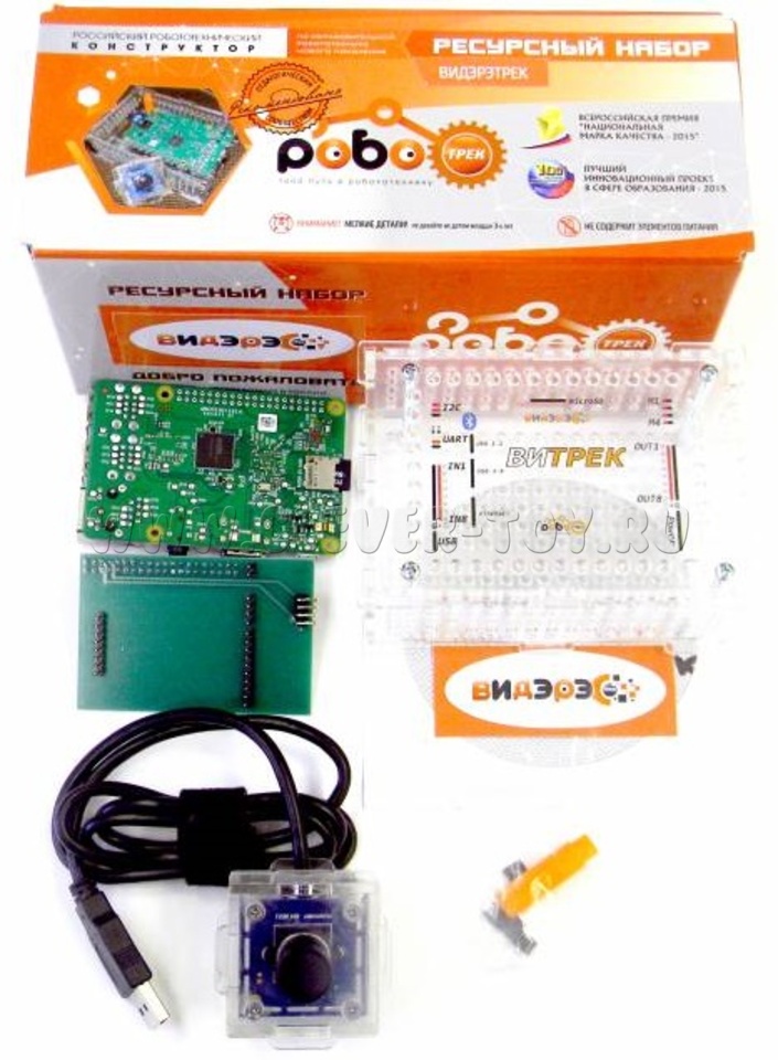 Ресурсный набор «Видэрэтрек-2» содержит полноценный микрокомпьютер Витрек, в состав которого входят Raspberry Pi 3 Model B+ и контроллер Трекдуино. Набор подходит для тех, у кого еще нет контроллера Трекдуино, но есть желание начать работать с технологиями компьютерного зрения.
