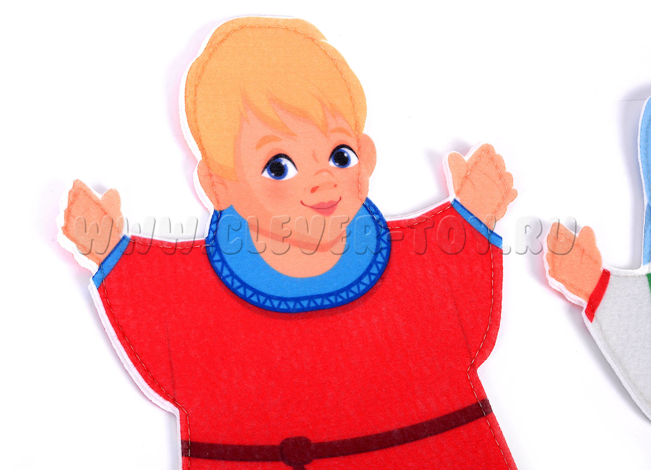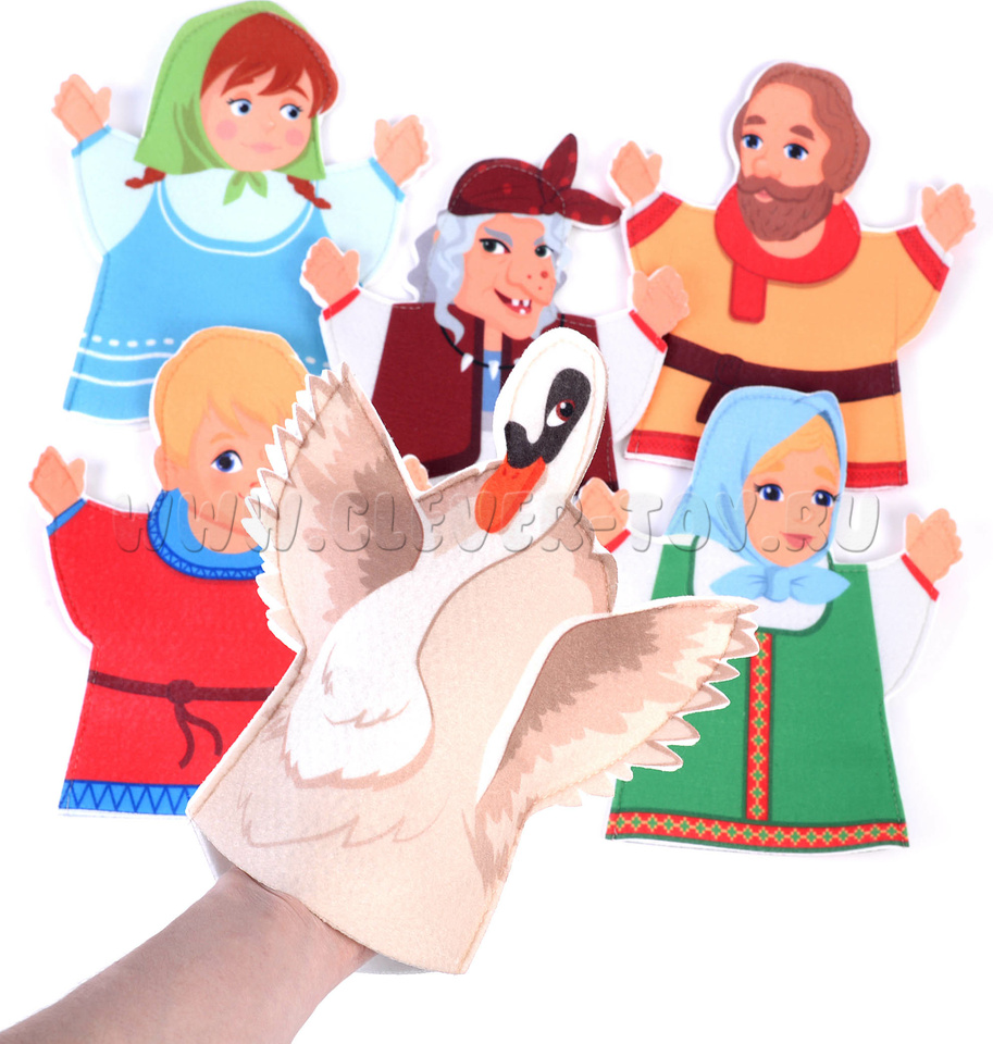 В наборе фигурки девочки, мальчика, отца, матери, Бабы Яги и лебедя. Средний размер фигурок 245*200 мм.