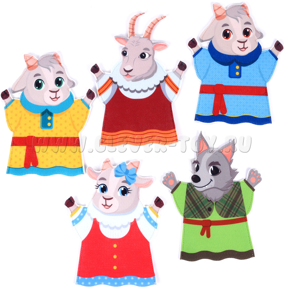 Театр на руку "Волк и козлята" – это долговечный сюжетный набор для разыгрывания постановок семейного театра и организации дидактических игр с детьми любого возраста. Занятия с театральными наборами способствуют развитию речи, творческого мышления, памяти и внимания, артистических способностей.