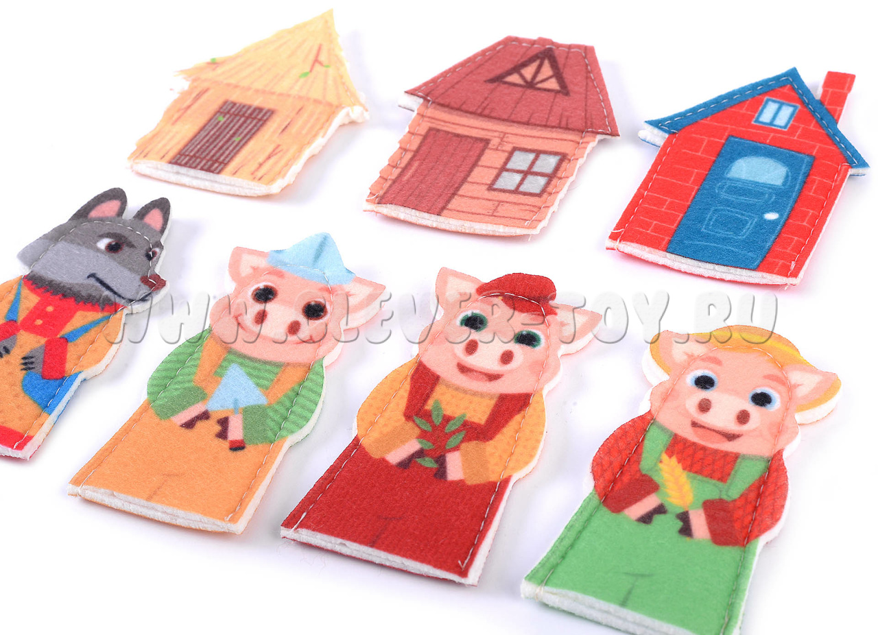 Пальчиковый театр Три поросенка (7 элементов, фетр)