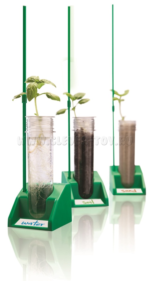 Пробирки, входящие в состав, прозрачные, а это значит, что ребёнок сможет наблюдать, как прорастают семена вверх и вниз. Пробирки обеспечивают 360 градусный обзор роста растений!