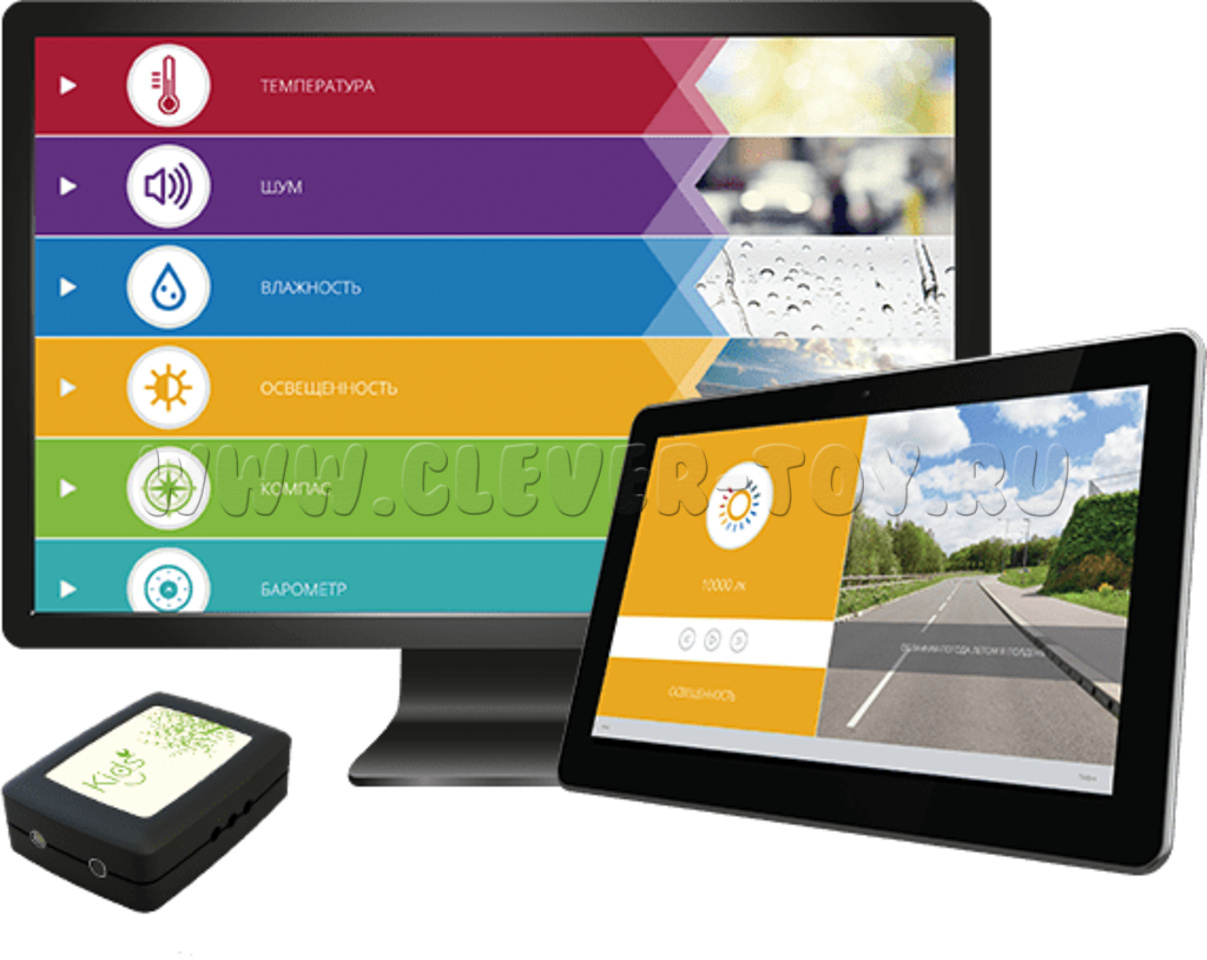 Итого в комплекте: 2 мультидатчика (с 9 встроенными датчиками) + 2 классических датчика + методическое пособие + ПО + 7 аксессуаров.