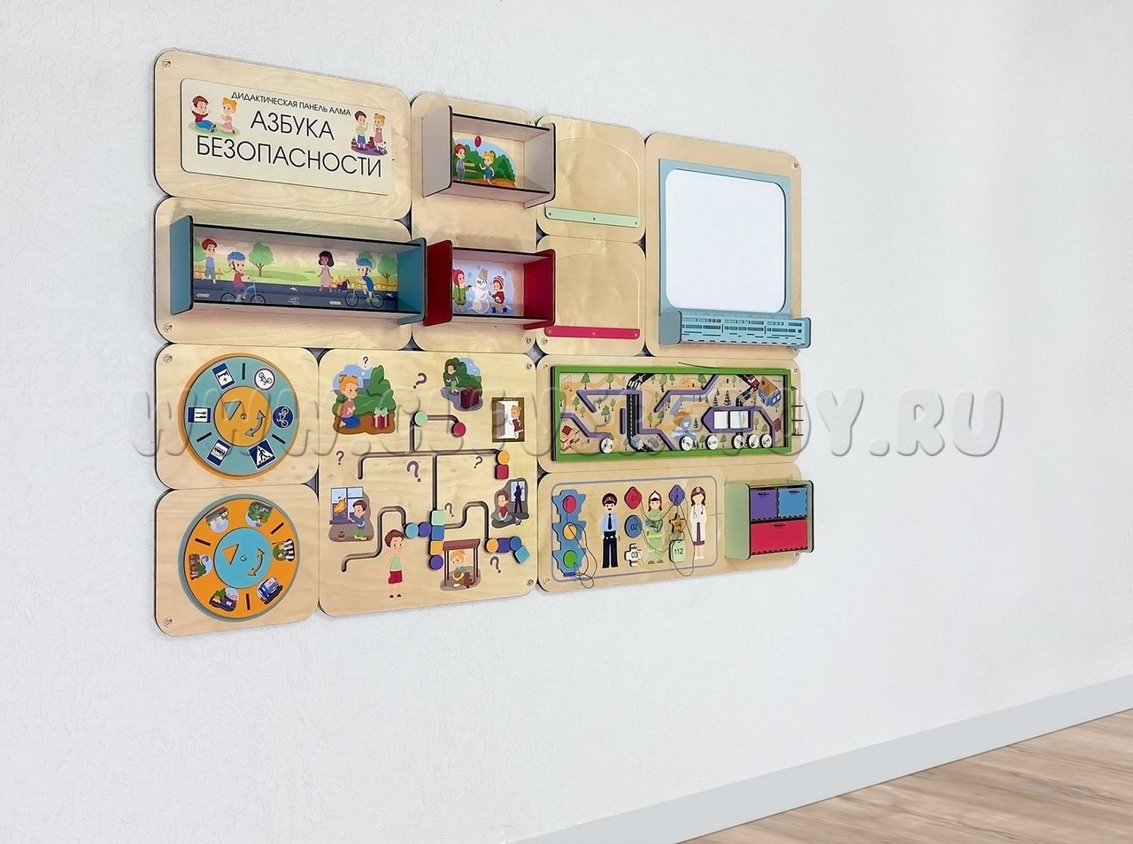 Дидактическая  панель "Азбука безопасности"  помогает детям освоить правила безопасного поведения дома и на улице, развивает логику, мышление, мелкую моторику и цветовосприятие. Все элементы продуманы для увлекательного и полезного обучения.
